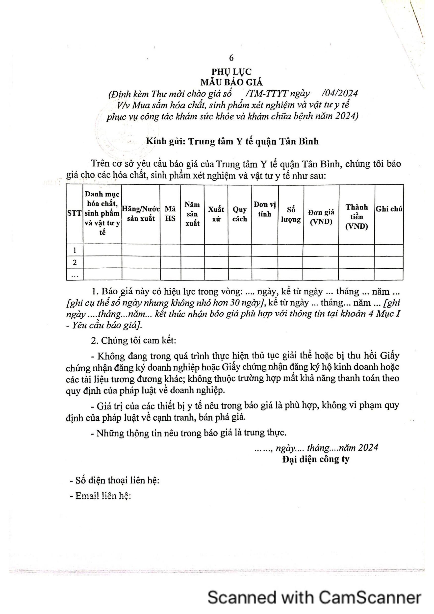 THƯ MỜI CHÀO GIÁ VỀ VIỆC MUA SẮM HÓA CHẤT, SINH PHẨM XÉT NGHIỆM VÀ VẬT TƯ Y TẾ NĂM 2024