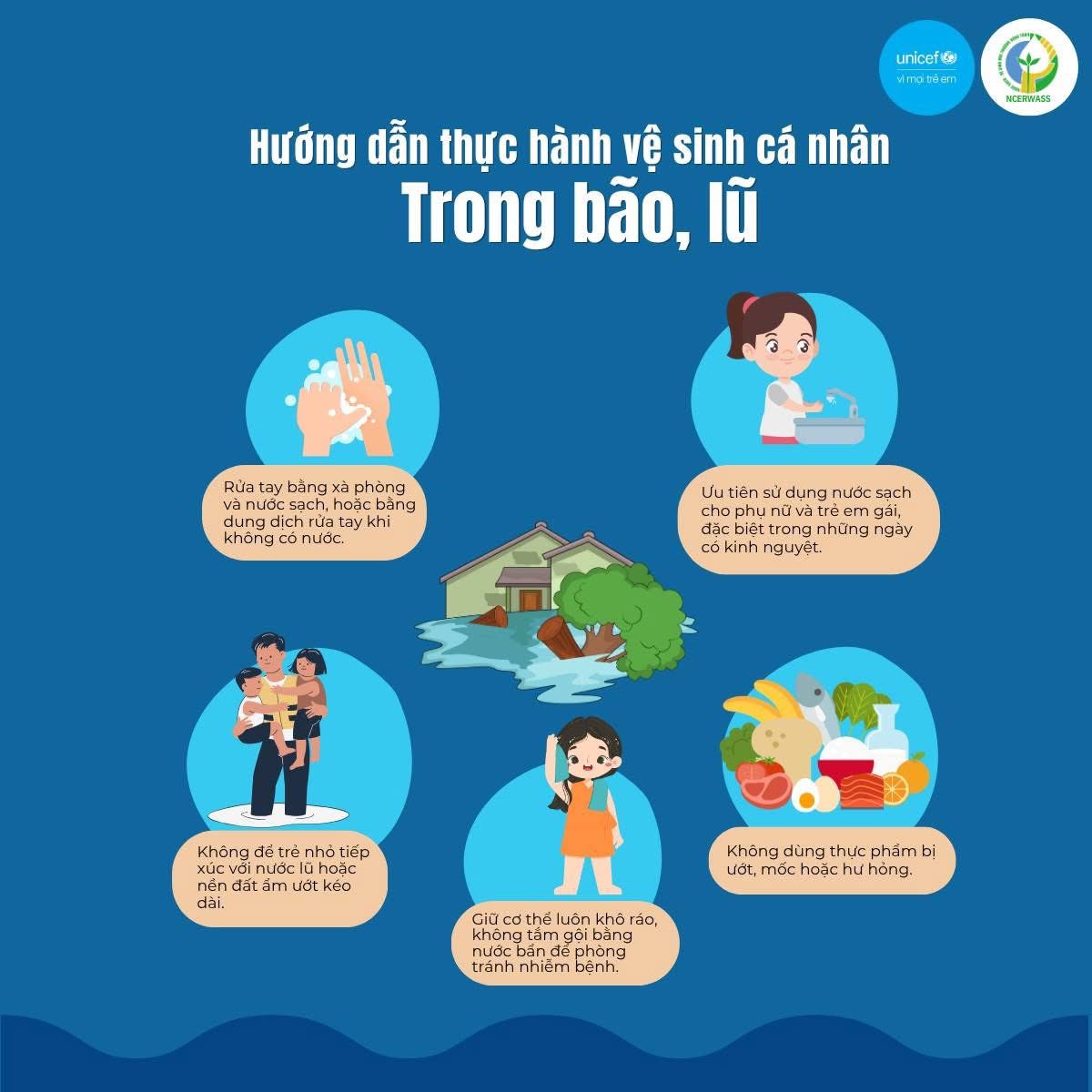Hướng dẫn thực hành vệ sinh cá nhân mùa bão, lũ