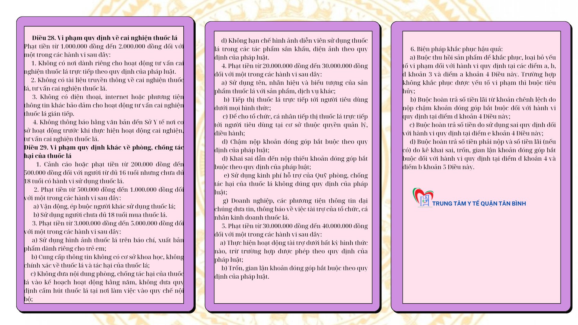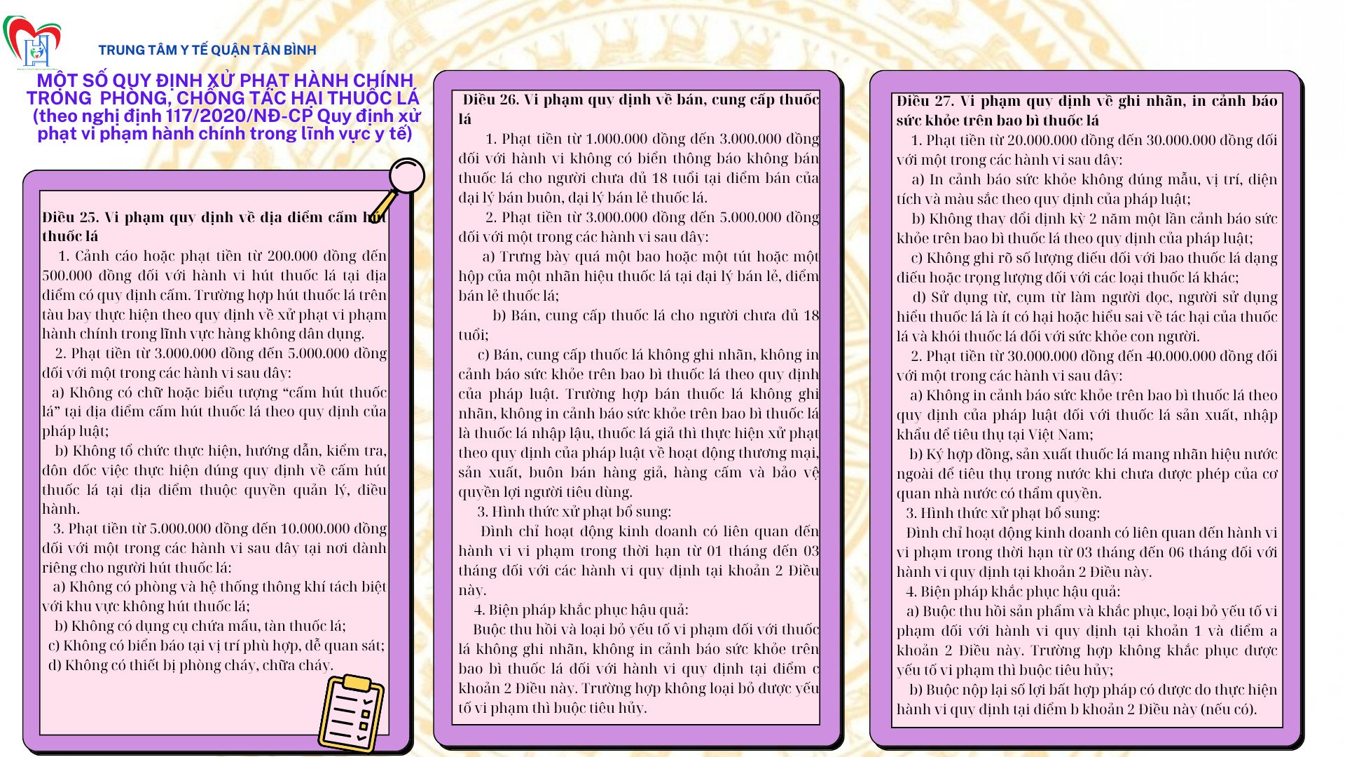 MỘT SỐ QUY ĐỊNH XỬ PHẠT HÀNH CHÍNH TRONGPHÒNG, CHỐNG TÁC HẠI THUỐC LÁ (theo nghị định 117/2020/NĐ-CP Quy định xử phạt vi phạm hành chính trong lĩnh vực y tế)