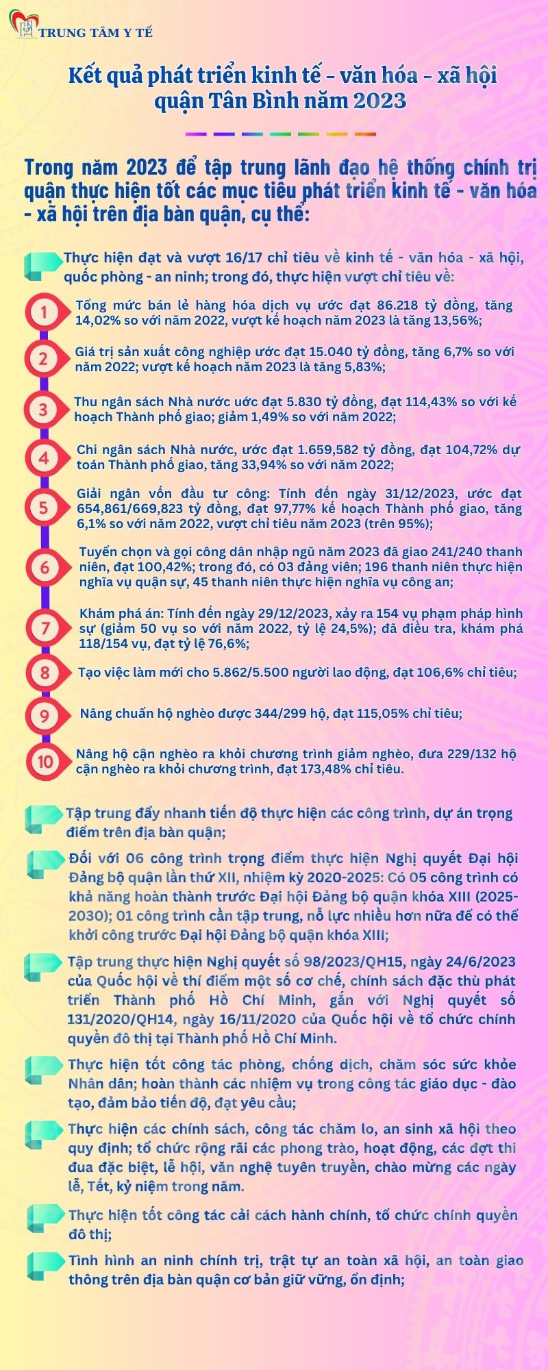Thông báo kết quả phát triển kinh tế - văn hóa - xã hội quận Tân Bình năm 2023 và mục tiêu, nhiệm vụ, giải pháp năm 2024