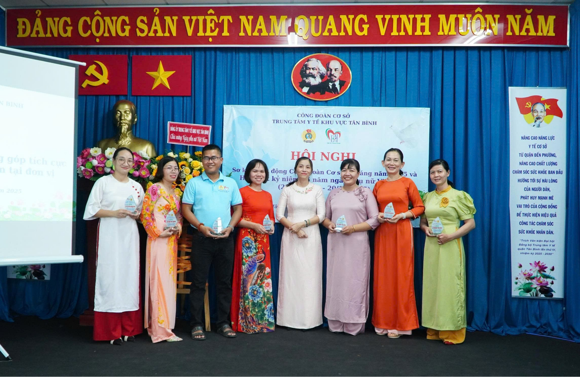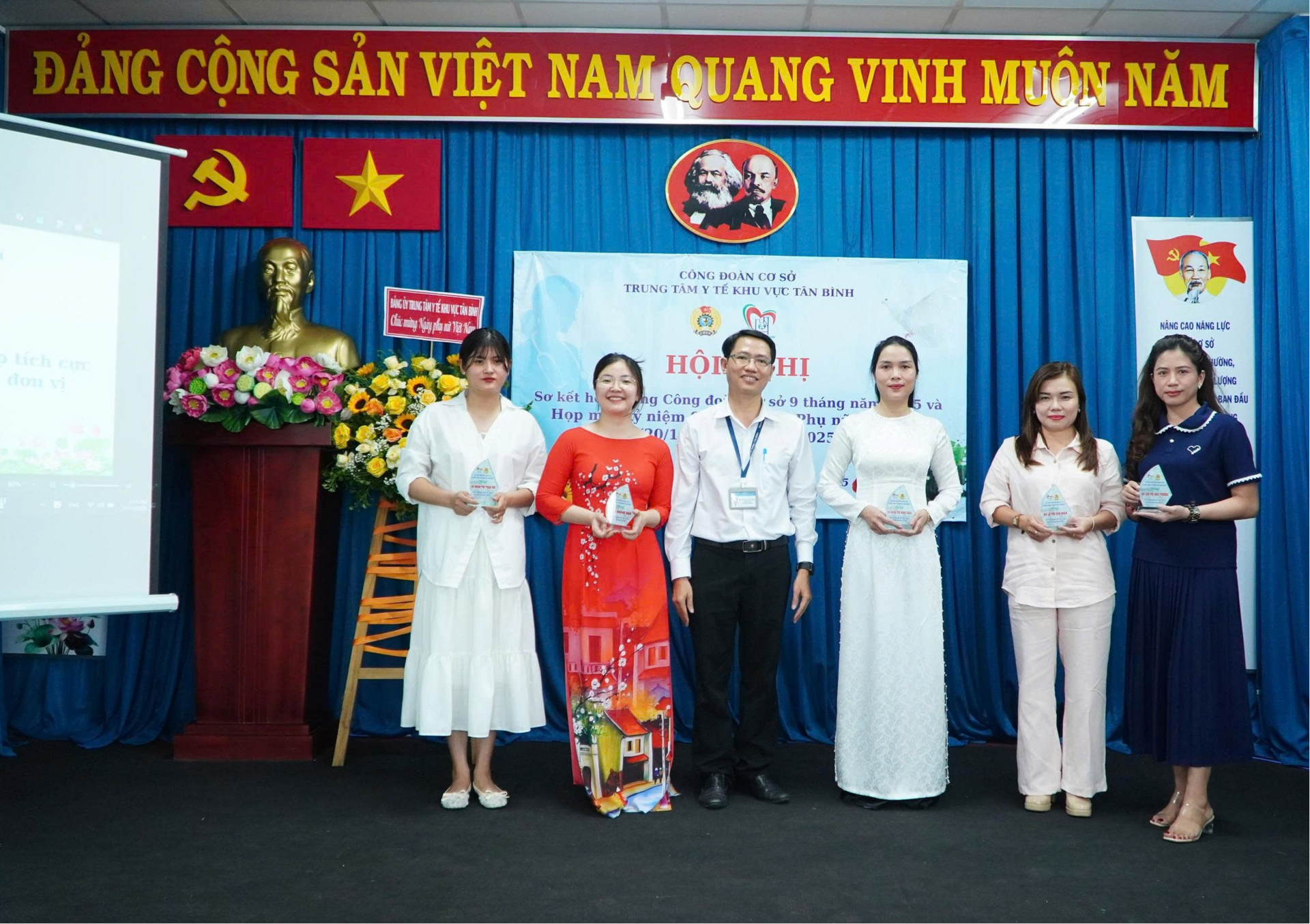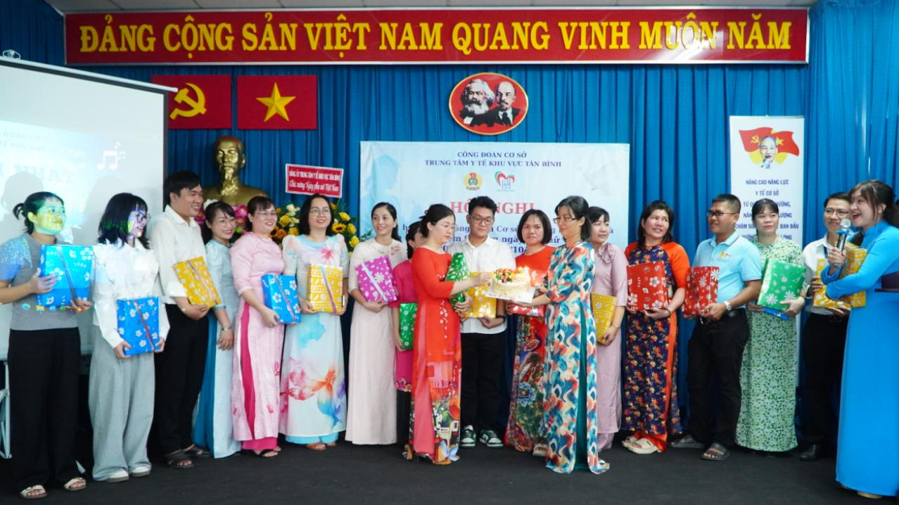 Cùng ngày, BCH CĐCS và BGĐ Trung tâm Y tế khu vực Tân Bình tổ chức kỷ niệm 95 năm ngày thành lập Hội Liên hiệp Phụ nữ Việt Nam (20/10/1930 - 20/102025). Phát biểu ôn lại truyền thống, đồng chí Phan Văn Chính, Phó Bí Thư Đảng ủy ghi nhận những đóng góp của nữ viên chức, người lao động của Trung Tâm Y tế đã đóng góp nhiều trong công tác chăm sóc sức khỏe nhân dân, phát huy những phẩm chất tốt đẹp của người phụ nữ Việt Nam hiện đại “Tự tin - Tự trọng - Trung hậu - Đảm đang”; phấn đấu nâng cao trình độ về mọi mặt, thi đua lao động sáng tạo, xây dựng gia đình “No ấm, bình đẳng, tiến bộ, hạnh phúc, đồng thời đẩy mạnh phong trào thi đua trong giới lao động nữ; tạo môi trường thi đua lành mạnh, giao lưu, gắn kết các đơn vị trực thuộc Trung tâm Y tế.. bên cạnh đó các chị, các em luôn cố gắng phấn đấu hoàn thành xuất sắc nhiệm vụ được giao, trở thành đoàn viên công đoàn ưu tú “Giỏi việc nước, đảm việc nhà” là chỗ dựa vững chắc cho gia đình và xã hội…, đồng chí mong muốn các nữ công đoàn viên, viên chức, người lao động luôn luôn sát cánh cùng Trung tâm Y tế đương đầu, vượt qua những khó khăn, tham gia tích cực trong các phong trào thi đua yêu nước do cơ quan cấp trên, Đảng ủy, Ban Giám đốc, Công đoàn cơ sở phát động góp phần xây dựng Trung tâm Y tế ngày càng phát triển vững mạnh.
