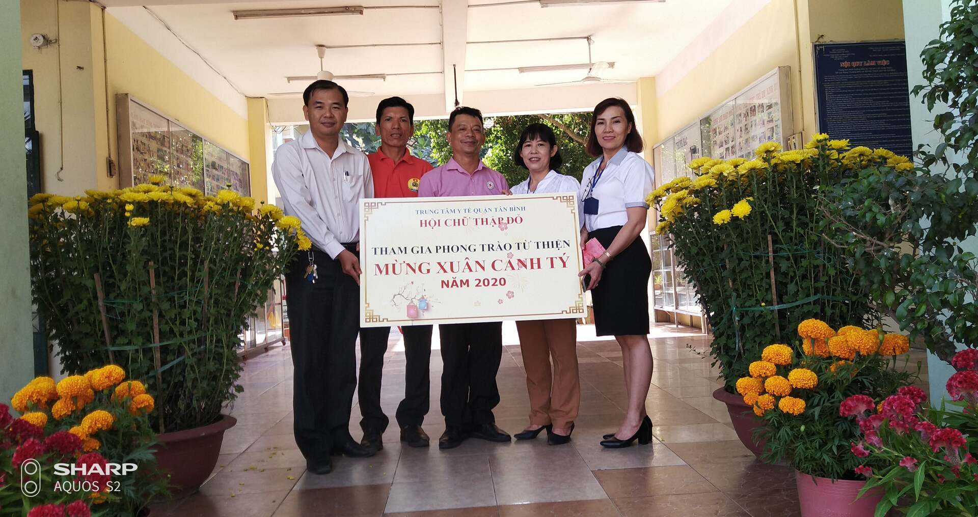 Nhân dịp đón Tết Cổ truyền Canh Tý 2020, vào sáng ngày 22/01/2020 đại diện BCH Hội Chữ thập đỏ và BCH Hội khuyến học Trung tâm đã đi thăm và tặng quà với số tiền là: 5.000.000 đồng cho trẻ em bị mồ côi được nuôi dưỡng tại mái ấm Tân Bình. Đây là địa chỉ xã hội nhân đạo trên địa bàn quận Tân Bình mà Hội Chữ thập đỏ Trung tâm Y tế đã quan tâm chăm sóc hàng năm. Kinh phí này được chi từ quỹ Hội của Hội Chữ thập đỏ trong các hoạt động xã hội từ thiện.