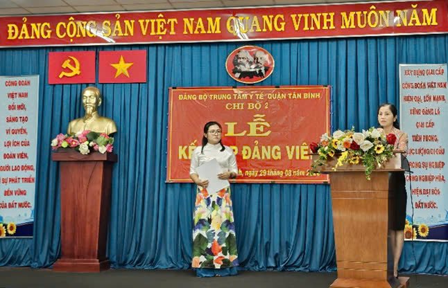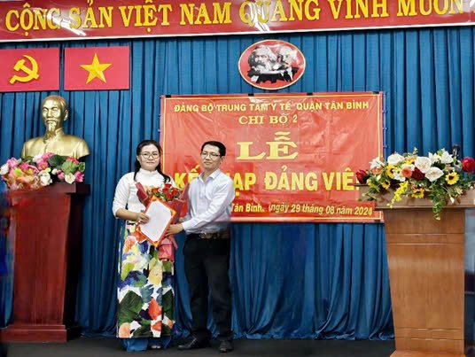Chiều ngày 29/8/2024, tại Hội trường Trung tâm Y tế quận Tân Bình, Chi bộ 2 - Đảng bộ Trung tâm Y tế đã tổ chức Lễ kết nạp đảng viên cho quần chúng ưu tú Lương Thị Thu Trúc – nhân viên khoa Chăm sóc sức khỏe sinh sản.