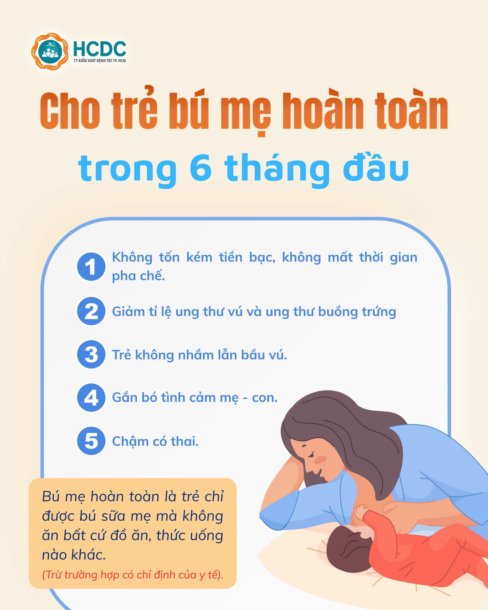 Bú mẹ hoàn toàn là trẻ chỉ được bú sữa mẹ mà không ăn bất cứ đồ ăn, thức uống nào khác. (Trừ trường hợp có chỉ định của y tế).