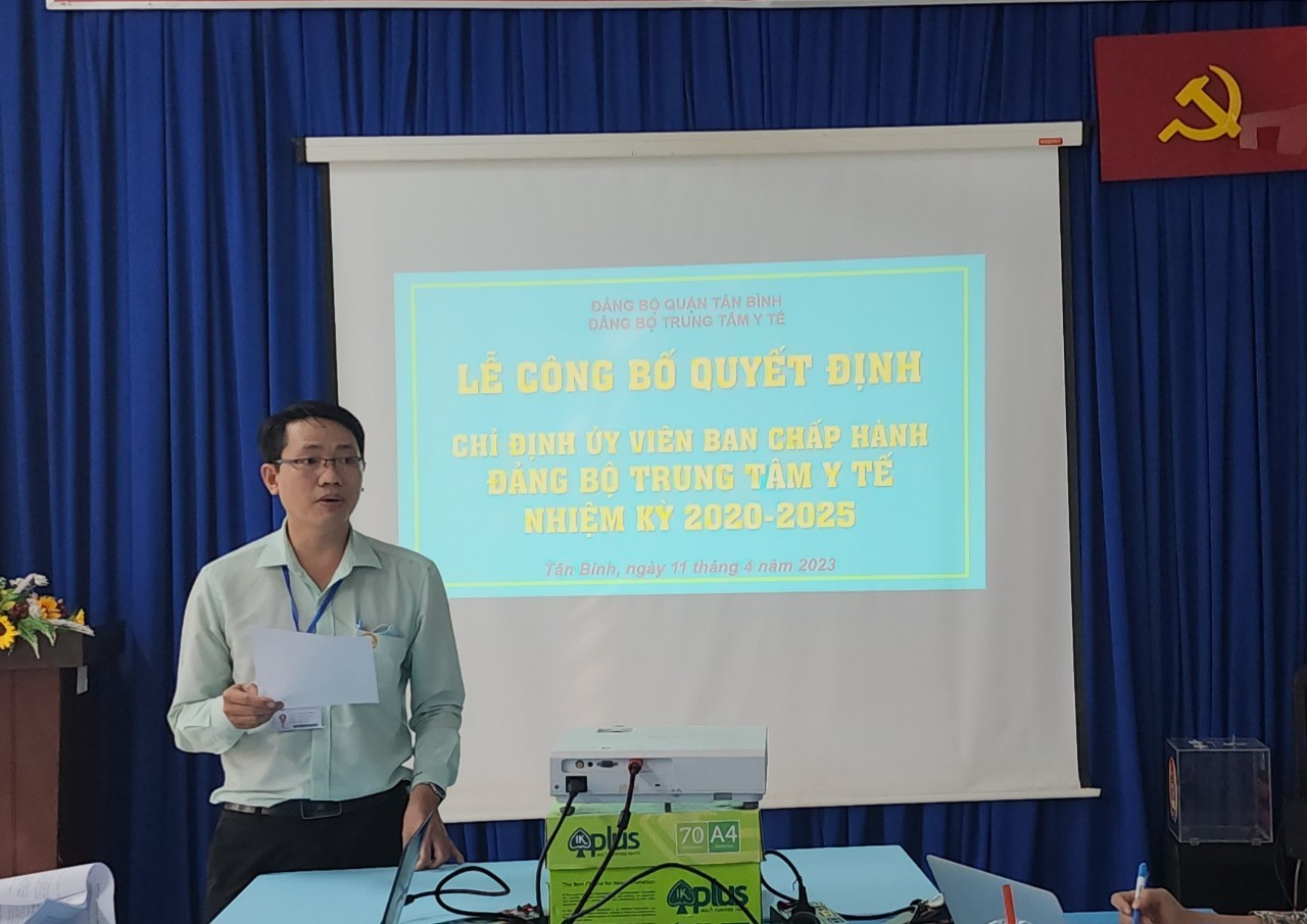 Chiều ngày 11/4/2023, Đảng ủy Trung tâm Y tế tổ chức Lễ công bố Quyết định của Ban thường vụ Quận ủy Tân Bình về việc chỉ định tham gia Ban Chấp hành Đảng bộ Trung tâm Y tế nhiệm kỳ 2020 – 2025.