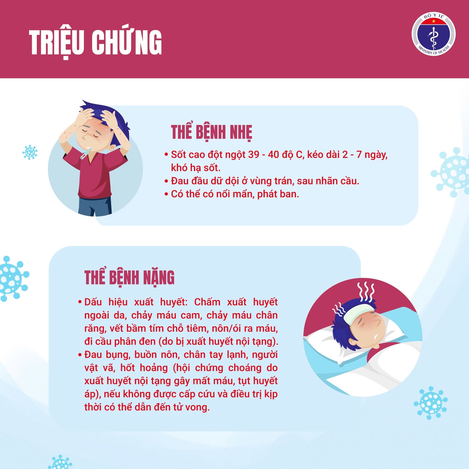 Triệu chứng của bệnh sốt xuất huyết. Ảnh: BYT