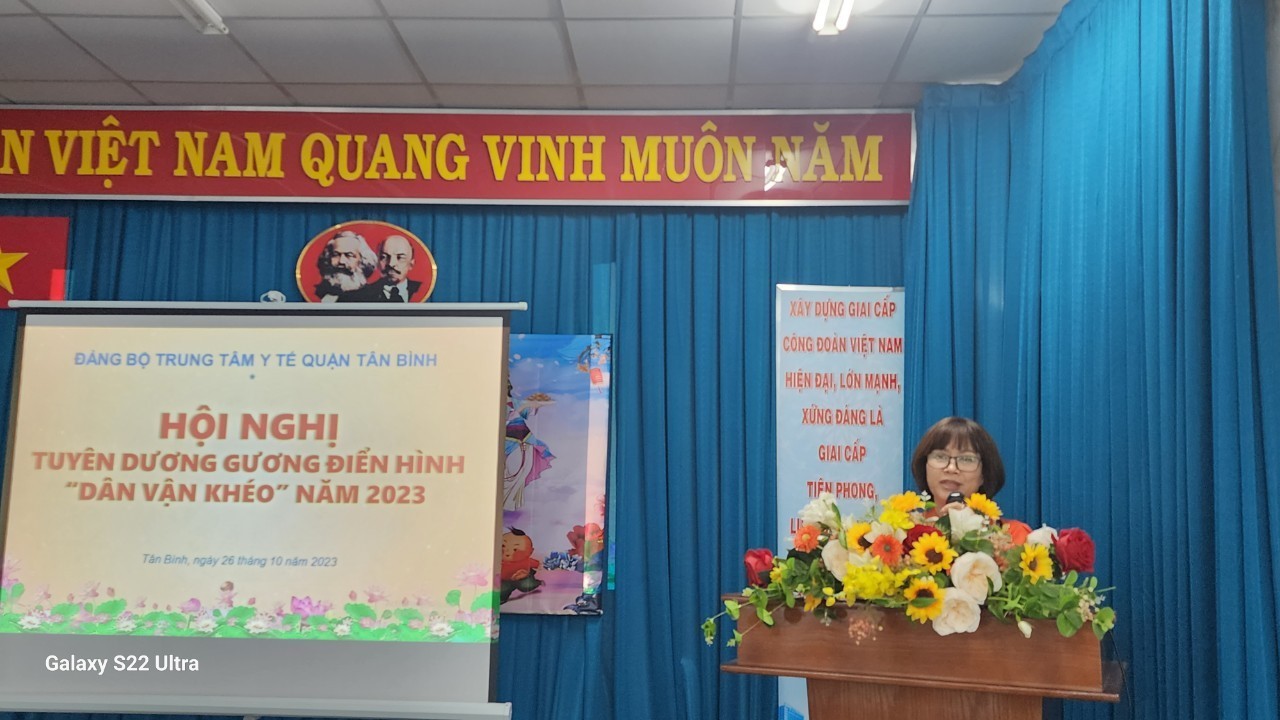 Ngày 26/10/2023 Đảng ủy Trung tâm Y tế tổ chức Hội nghị tuyên dương gương điển hình “Dân vận khéo” năm 2023 và kỷ niệm 93 năm công tác dân vận của Đảng, 30 năm Ngày thành lập Ban Dân vận Quận ủy Tân Bình.
