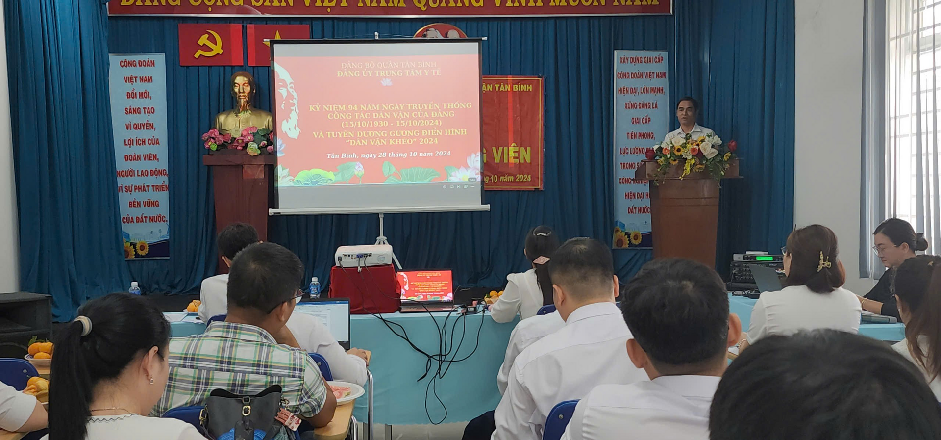 Ngày 28/10/2024 Đảng ủy Trung tâm Y tế tổ chức Hội nghị tuyên dương gương điển hình “Dân vận khéo” năm 2024 và kỷ niệm 94 năm ngày truyền thống công tác dân vận của Đảng (15/10/1930 - 15/10/2024).