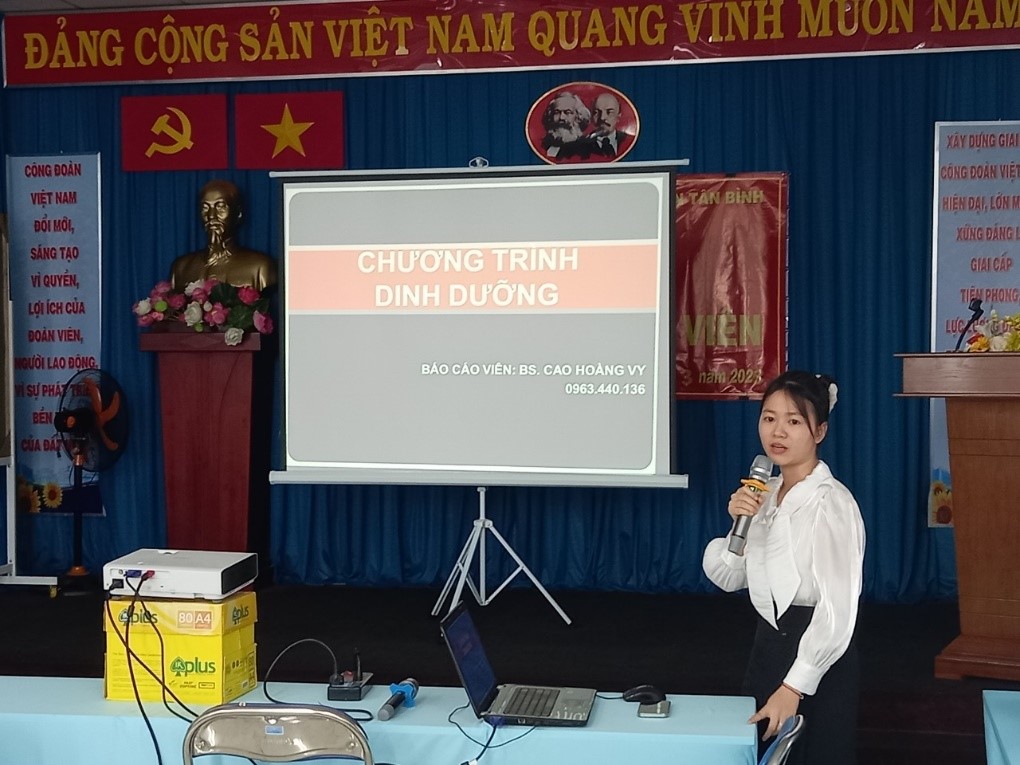 BS. Cao Hoàng Vy (Nhân viên khoa Y tế công cộng và Dinh dưỡng) trình bày về chương trình Vi chất dinh dưỡng
