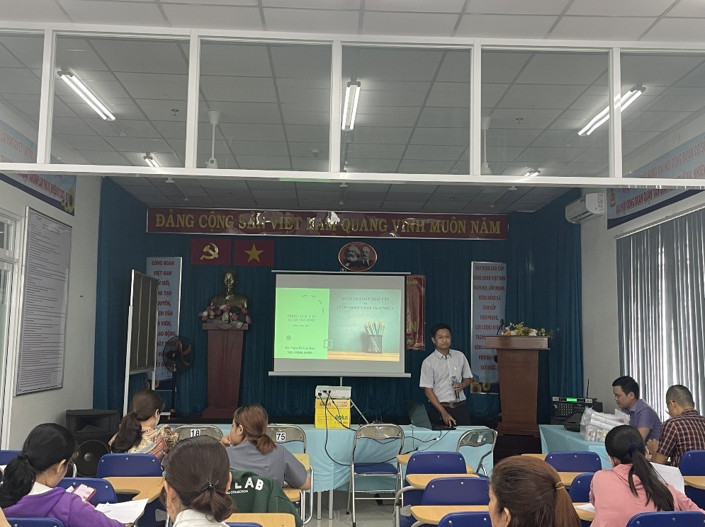 KS. Nguyễn Gia Bảo – Khoa YTCC&DD hướng dẫn cụ thể các biểu mẫu báo cáo và phổ biến nội dung chương trình quản lý chất thải y tế