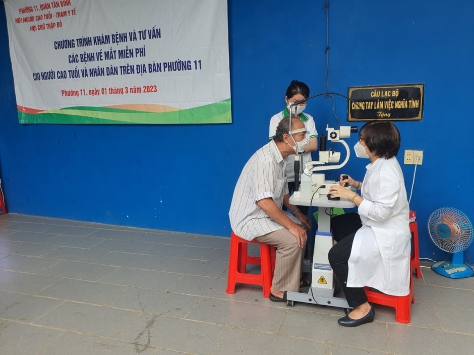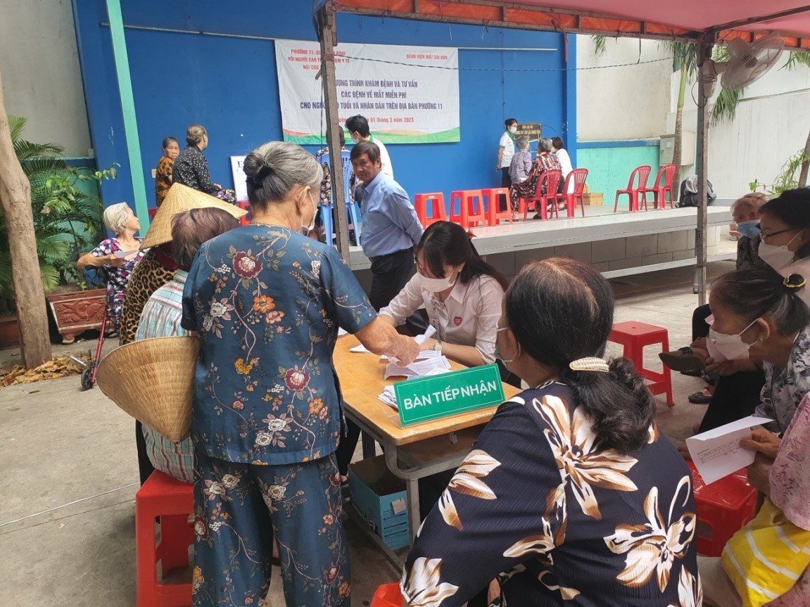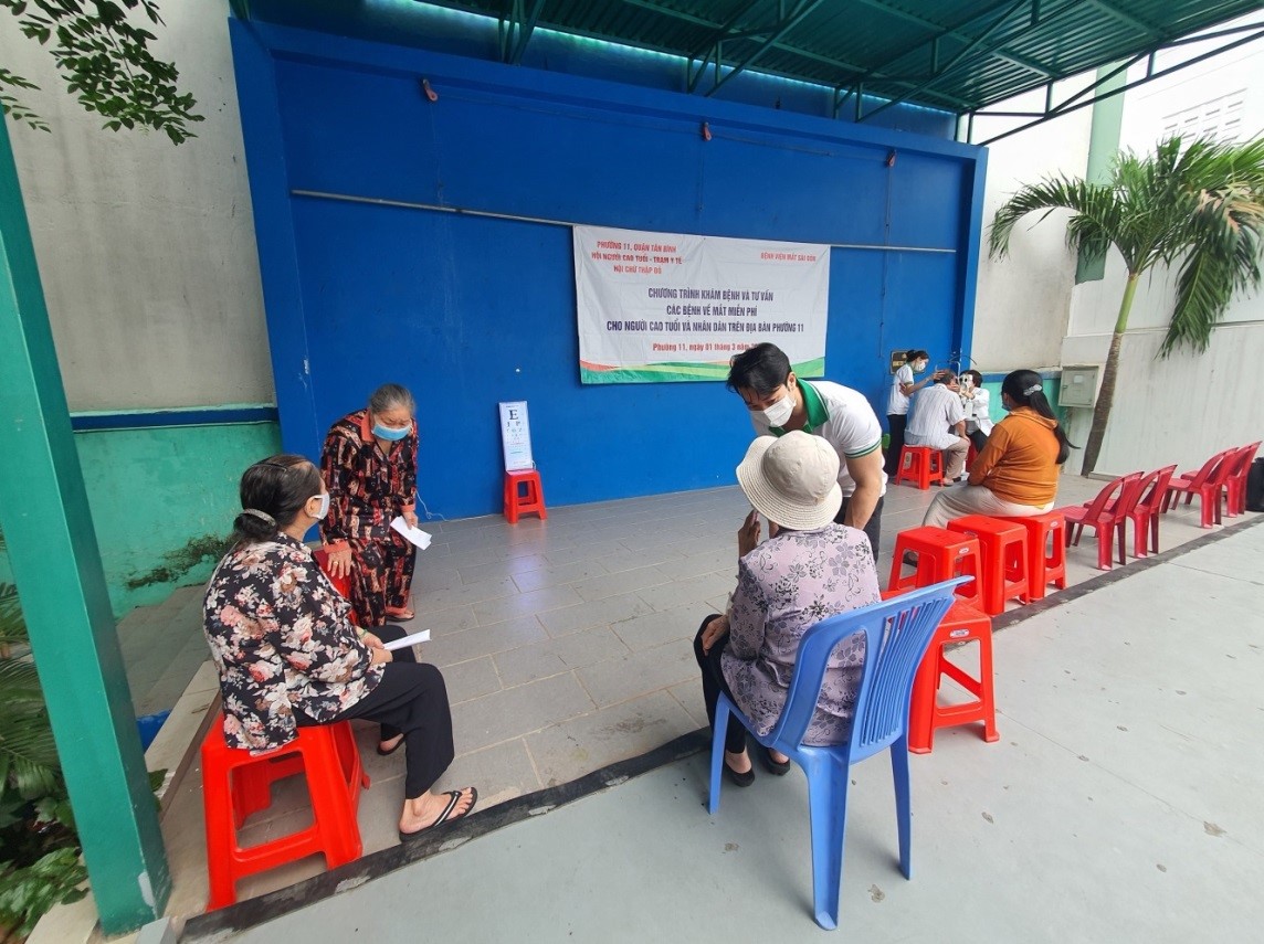 Sáng 01/03/2023, tại nhà văn hóa Phường 11, quận Tân Bình, Bệnh viện Mắt Sài Gòn phối hợp cùng Hội người cao tuổi, Hội chữ thập đỏ và Trạm Y tế Phường 11, tổ chức Chương trình “MẮT SÁNG MẮT KHỎE” và Khám và tư vấn mắt miễn phí để khám, tầm soát và tư vấn điều trị các bệnh lý về mắt cho người cao tuổi và nhân dân trên địa bàn phường.