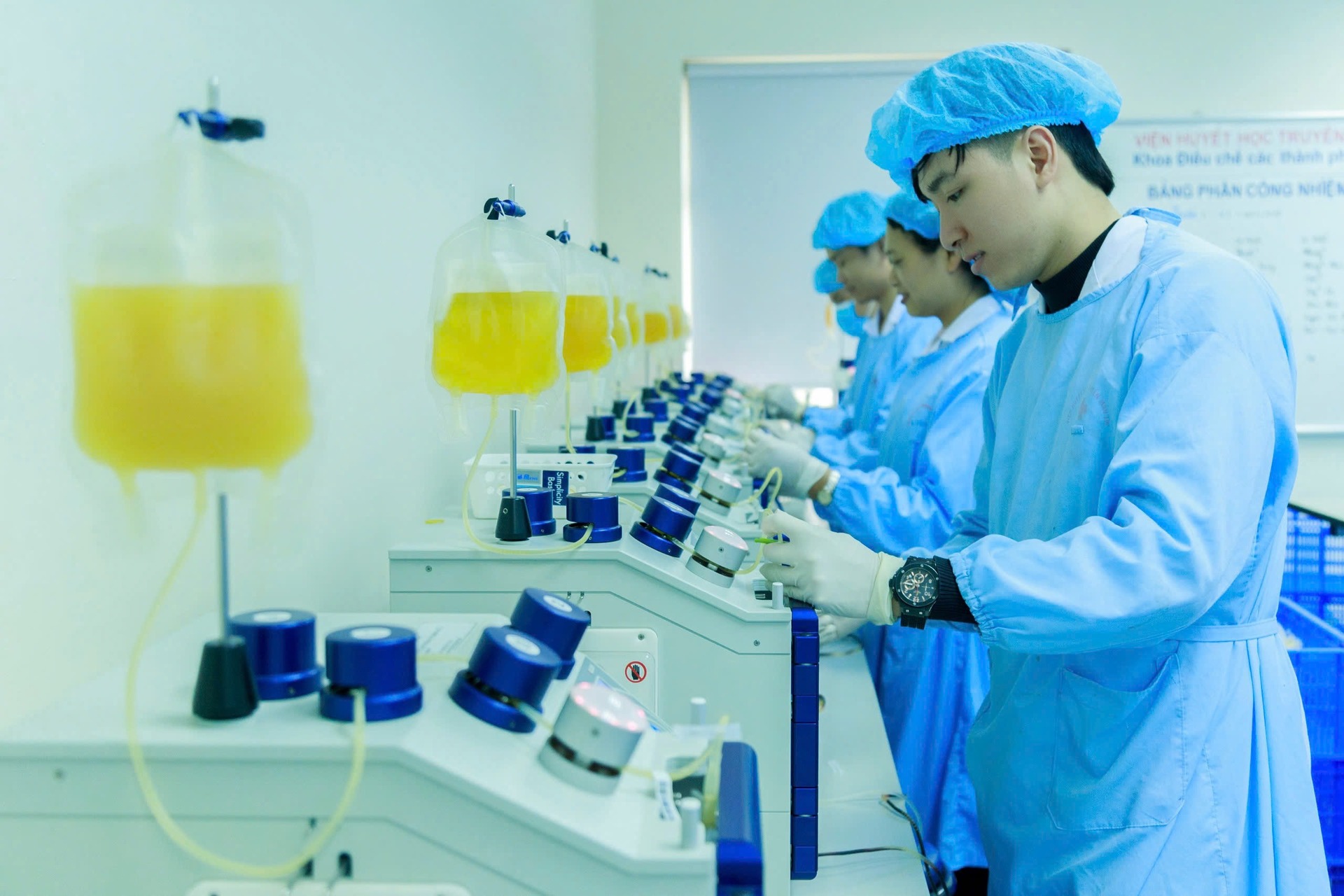 Kỹ thuật y của Viện Huyết học – Truyền máu Trung ương làm chủ các thiết bị máy móc hiện đại trong điều chế các chế phẩm máu. Ảnh: Viện Huyết học - Truyền máu Trung ương