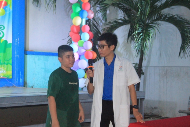 Bác sĩ Phúc Nguyên - Báo cáo viên đặt câu hỏi lượng giá cho thanh thiếu niên tham gia buổi truyền thông