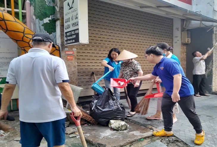 Ban ngành đoàn thể, Ban điều hành khu phố thực hiện tổng vệ sinh môi trường