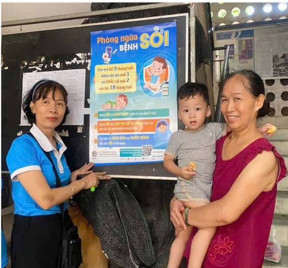 Bên cạnh các hoạt động phòng chống sốt xuất huyết trong Lễ ra quân, các cộng tác viên sức khoẻ cộng đồng(CTVSKCĐ) tăng cường truyền thông phòng chống dịch bệnh sởi như treo dán các poster, baner, phát tờ rơi tuyên truyền, thông báo lịch tiêm sởi tại Trạm y tế và các trường học trên địa bàn cho các hộ dân có trẻ từ 1 tuổi đến 10 tuổi tại các khu dân cư đông người, chung cư, nhà trọ…, nhằm giúp phụ huynh có con trong độ tuổi trên cho trẻ đi tiêm chủng đầy đủ và biết được cách phòng bệnh sởi cho trẻ và gia đình.