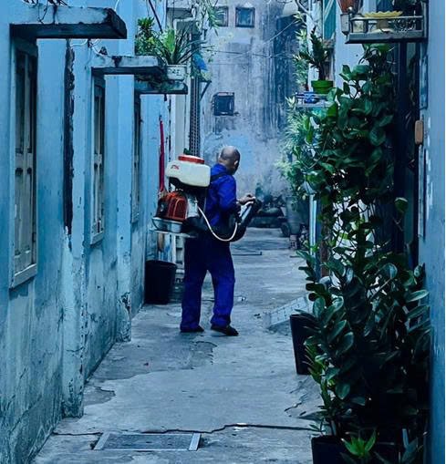 Hoạt động phun thuốc của máy phun thuốc nhỏ xử lý ổ dịch tại hẻm 71 Nguyễn Phúc Chu
