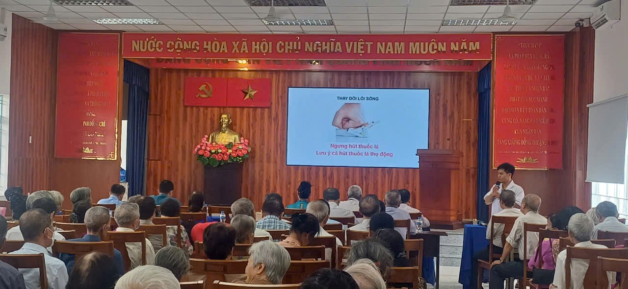 Bên cạnh việc tuyên truyền biện pháp phòng ngừa các bệnh không lây nhiễm, báo cáo viên cũng nhấn mạnh đến tác hại của hút thuốc lá trong đó lưu ý cả hút thuốc lá thụ động. Hút thuốc lá là một trong những nguyên nhân làm tăng mắc các bệnh mạn tính ở người cao tuổi và thanh thiếu niên hiện nay.