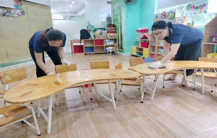 Giáo viên và bảo mẫu thực hiện các biện pháp phòng chống bệnh tay chân miệng