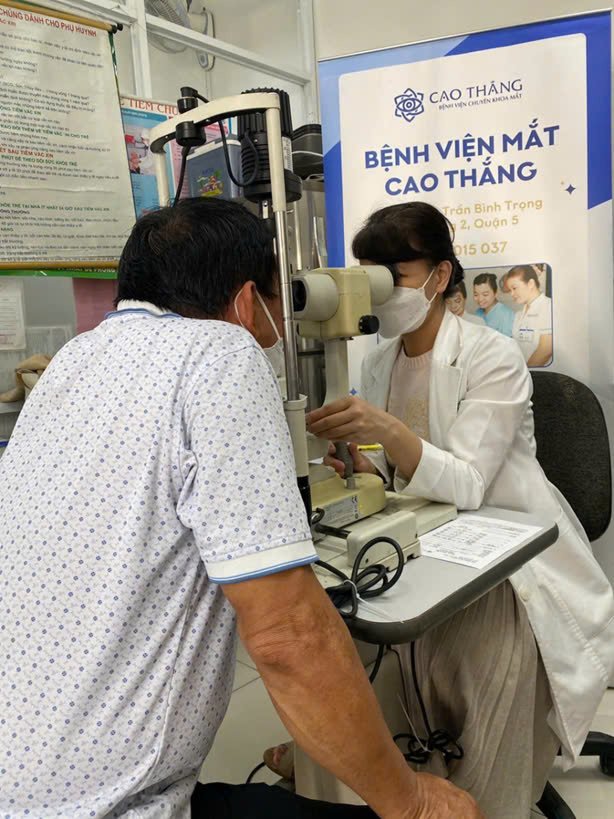 Đoàn khám của bệnh viện mắt Cao Thắng thực hiện khám chuyên khoa mắt cho người cao tuổi