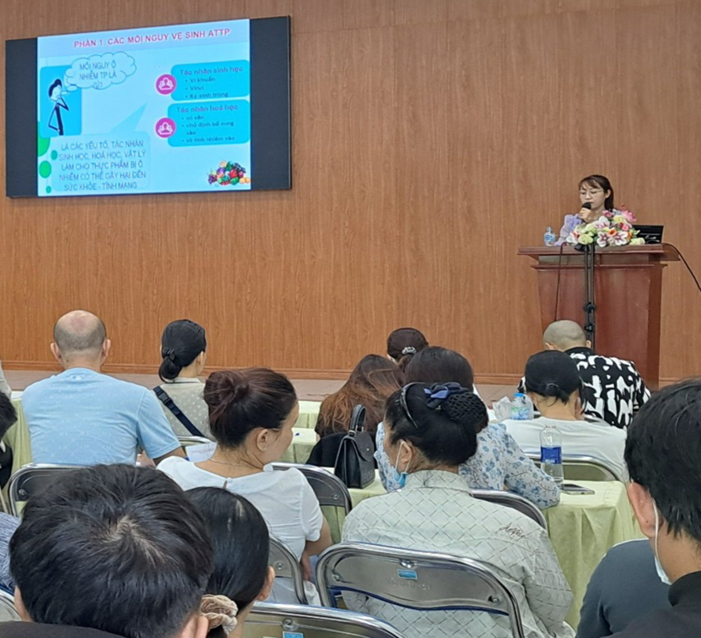 Tại hội nghị, đại biểu tham dự đã được báo cáo viên cung cấp kiến thức về an toàn thực phẩm, các mối nguy ảnh hưởng đến chất lượng thực phẩm, điều kiện bảo đảm an toàn thực phẩm đối với cơ sở kinh doanh dịch vụ ăn uống; phương pháp thực hành tốt vệ sinh an toàn thực phẩm; 10 nguyên tắc vàng để chế biến thực phẩm; các điều kiện đảm bảo an toàn thực phẩm, các vấn đề an toàn thực phẩm nổi bật hiện nay như “vi khuẩn salmonella và ngộ độc thực phẩm”, các thực phẩm dễ có nguy cơ bị nhiễm Salmonella như thịt gia cầm và các sản phẩm từ thịt, trứng và các sản phẩm từ trứng, sữa và các sản phẩm từ sữa,…cùng với đó là các biện pháp phòng tránh nhiễm khuẩn Salmonella …