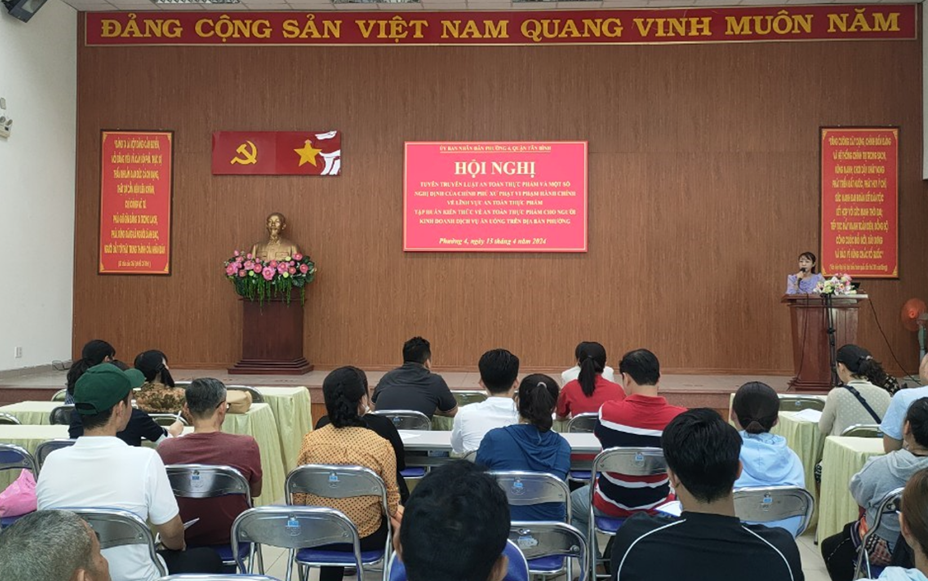 Sáng ngày 13/4/2024, Trạm y tế tham mưu Ủy ban nhân dân phường 4, quận Tân Bình phối hợp các Ban ngành đoàn thể phường tổ chức Hội nghị tuyên truyền Luật An toàn thực phẩm, phổ biến kiến thức về an toàn thực phẩm.