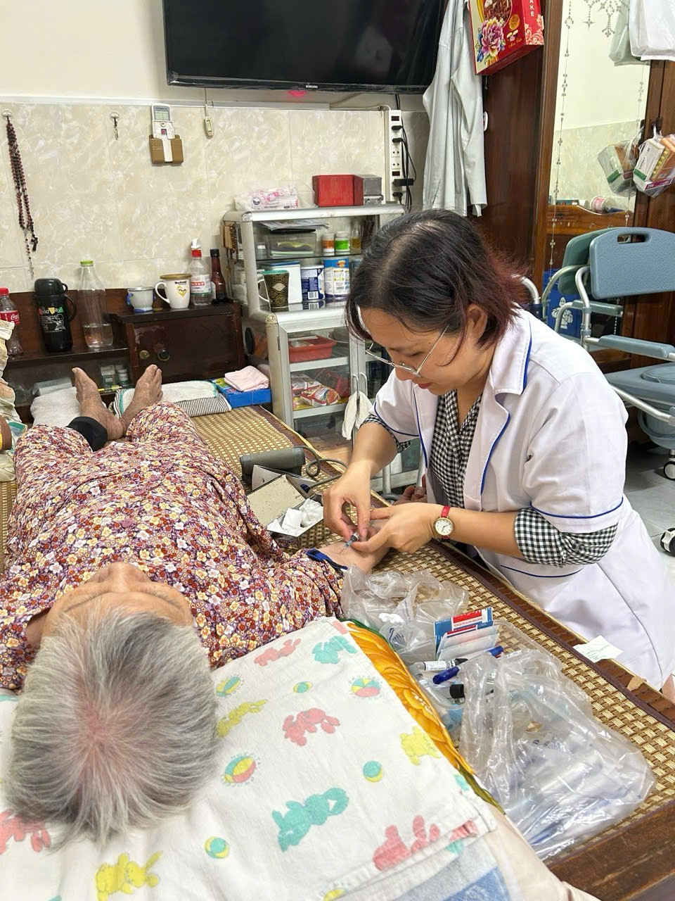Nhân viên trạm y tế phường thực hiện thăm, khám cho NCT tại nhà