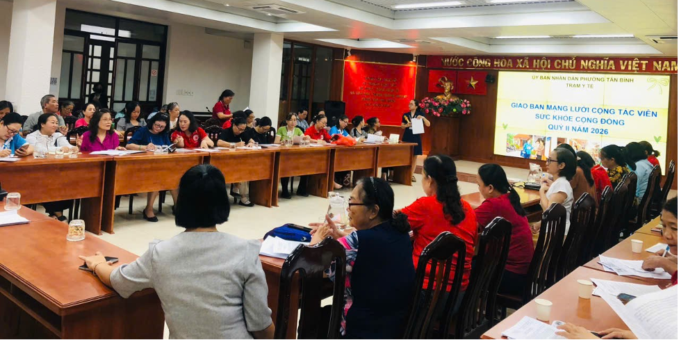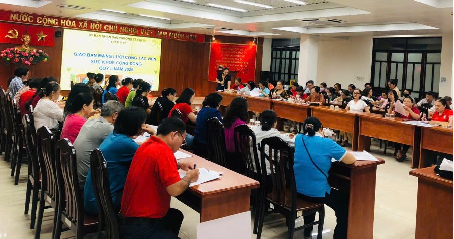 Chiều ngày 10/04/2026, phòng Văn hóa – Xã hội phường Tân Bình phối hợp Trạm Y tế phường tổ chức giao ban mạng lưới cộng tác viên sức khỏe cộng đồng Quý II năm 2026 tại Hội trường 1, Ủy ban nhân dân phường Tân Bình.