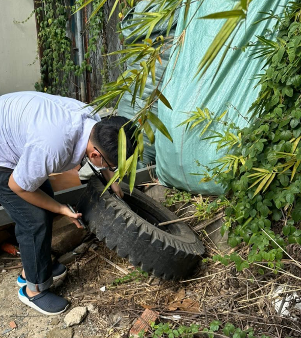 Cũng tại thời điểm này Trạm Y tế cùng với tổ kiểm tra phòng chống dịch bệnh phối hợp Ban điều hành khu phố, CTV SKCĐ, … kiểm tra, giám sát các điểm nguy cơ (ĐNC) là các công trình xây dựng, khu đất trống,…nhằm kịp thời phát hiện, xử lý các điểm có nguy cơ phát sinh SXH trên địa bàn phường.
