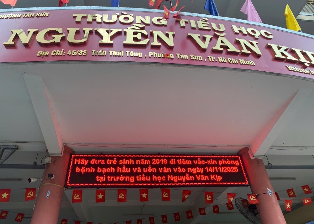 Chạy bảng điện tử tuyên truyền tiêm vắc xin Td tại các trường Tiểu học