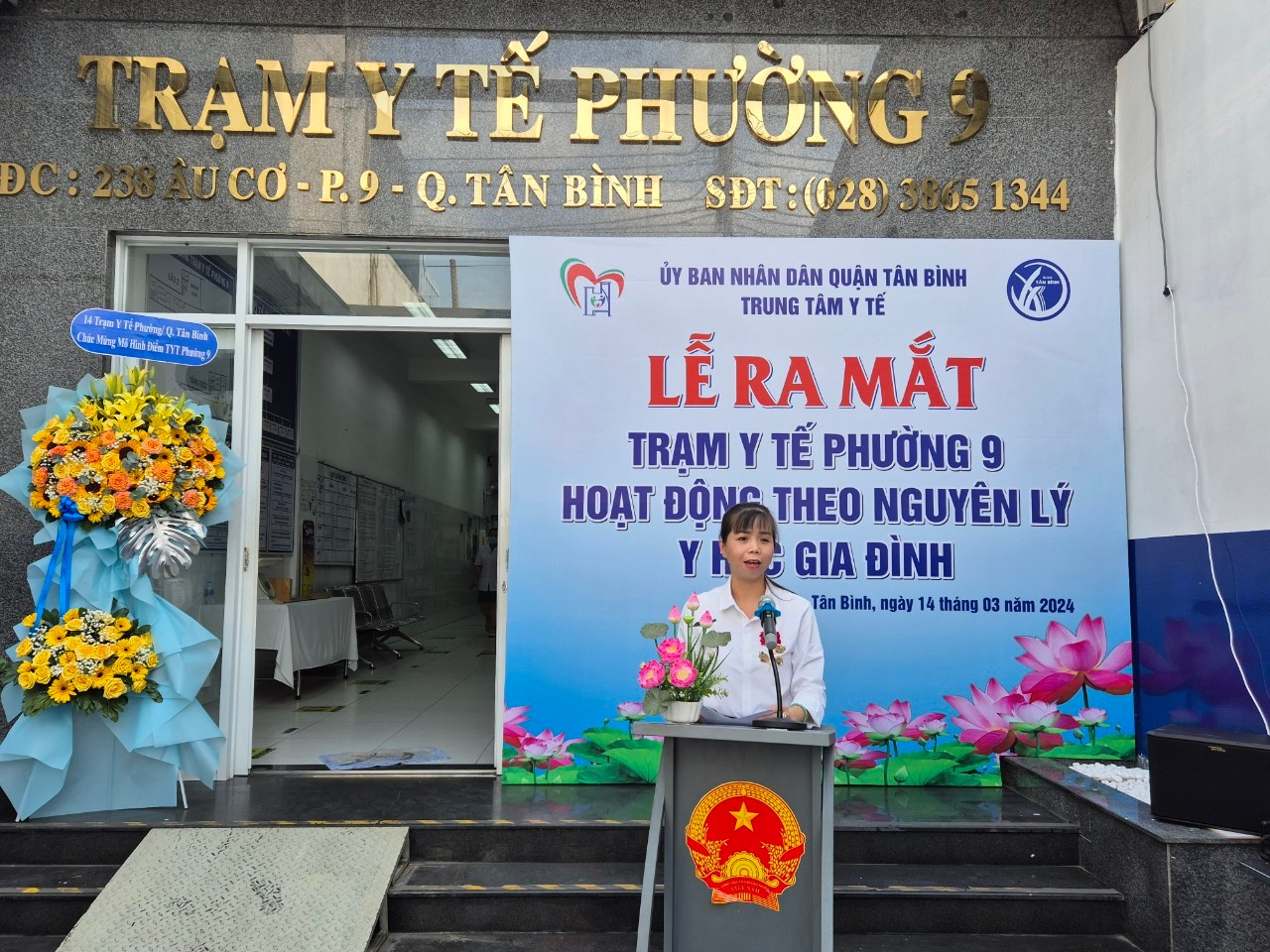 Phát biểu tại buổi Lễ ra mắt, bà Lê Thị Thu Sương - Ủy viên ban thường vụ Quận ủy, Phó chủ tịch Uỷ ban nhân dân quận Tân Bình chúc mừng và ghi nhận những nỗ lực của Trung tâm Y tế đã ra mắt Trạm Y tế thứ 3 trên địa bàn quận đưa vào hoạt động theo nguyên lý y học gia đình; qua đó người dân trên địa bàn phường được chăm sóc sức khỏe, khám chữa bệnh và cấp cứu ban đầu ngay tại Trạm Y tế. Để công tác chăm sóc sức khỏe người dân được toàn diện và liên tục tại Trạm Y tế, Bà đã đề cập đến những gắn kết quan trọng như sau: