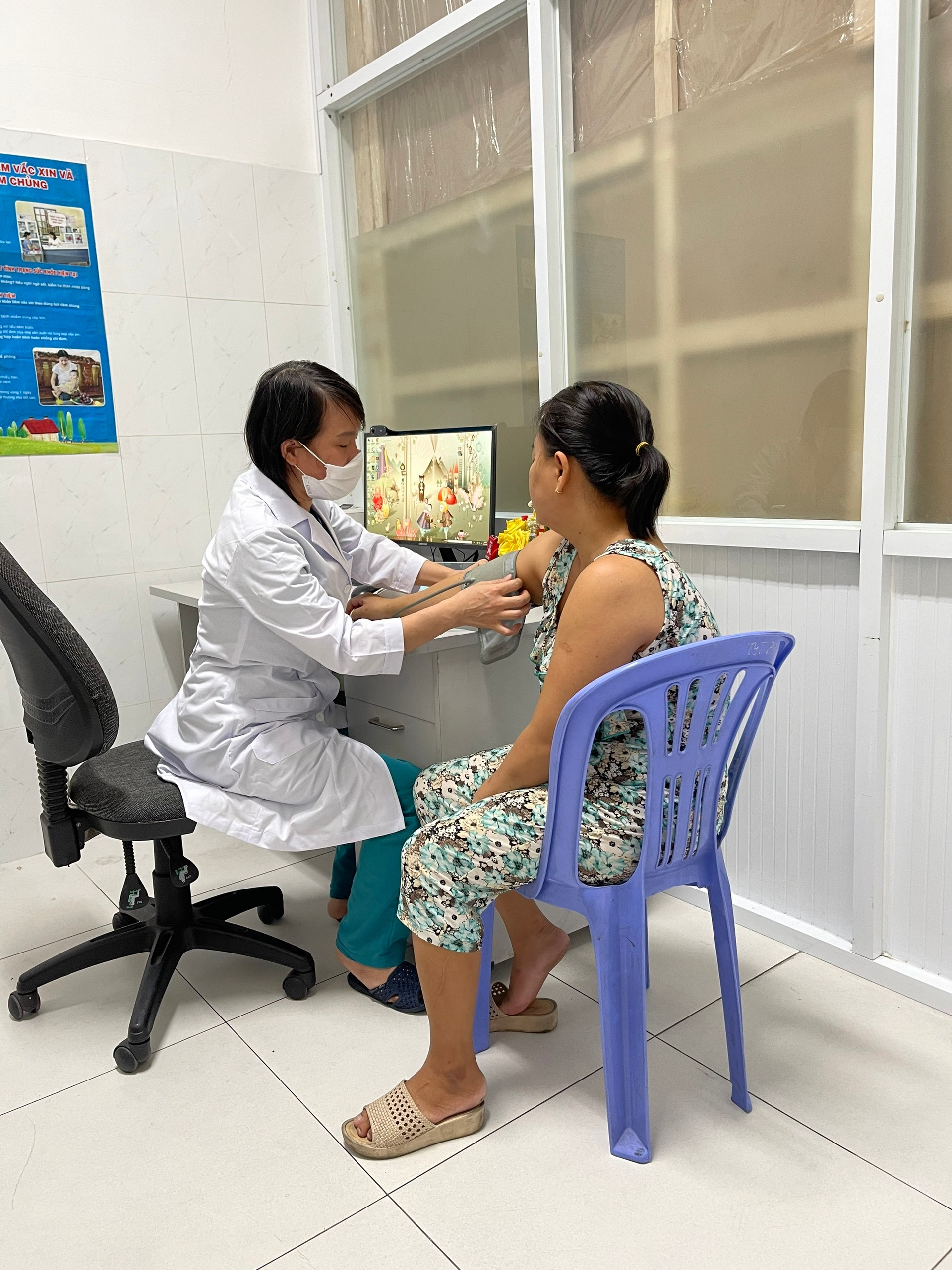 Bác sĩ thực hiện thăm khám cho bệnh nhân tại Trạm y tế phường 9