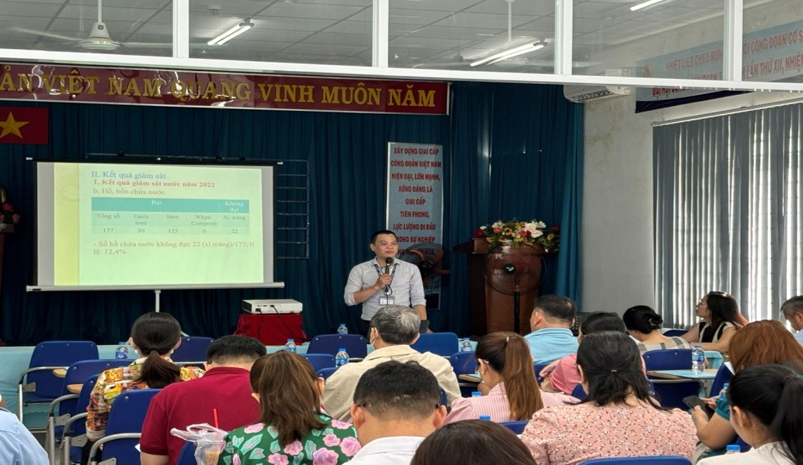 Tiếp đó, báo cáo viên cũng đã triển khai rộng rãi quy trình giám sát chất lượng nước tại chung cư, trường học. Đồng thời, báo cáo viên ghi nhận và giải đáp thắc mắc cho người tham dự về một số vấn đề chuyên môn như: phương pháp lấy mẫu nước sinh hoạt xét nghiệm, các lưu ý khi lấy mẫu nước xét nghiệm chỉ số vi sinh…