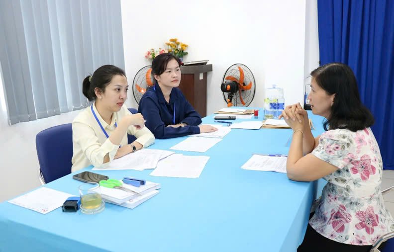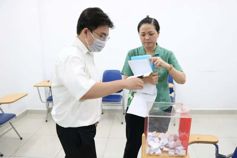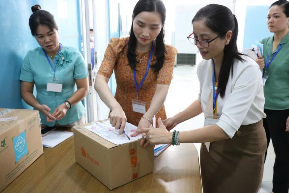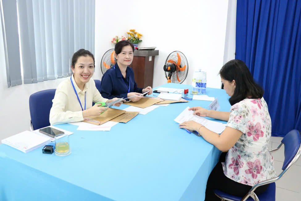 Bà Đỗ Thị Ngọc Lan, Trưởng phòng Nội vụ quận Tân Bình, Phó Chủ tịch Hội đồng tuyển dụng và Bác sĩ CKII. Nguyễn Hoàng thành viên ban khảo thí kiểm tra thùng bộ đề thi