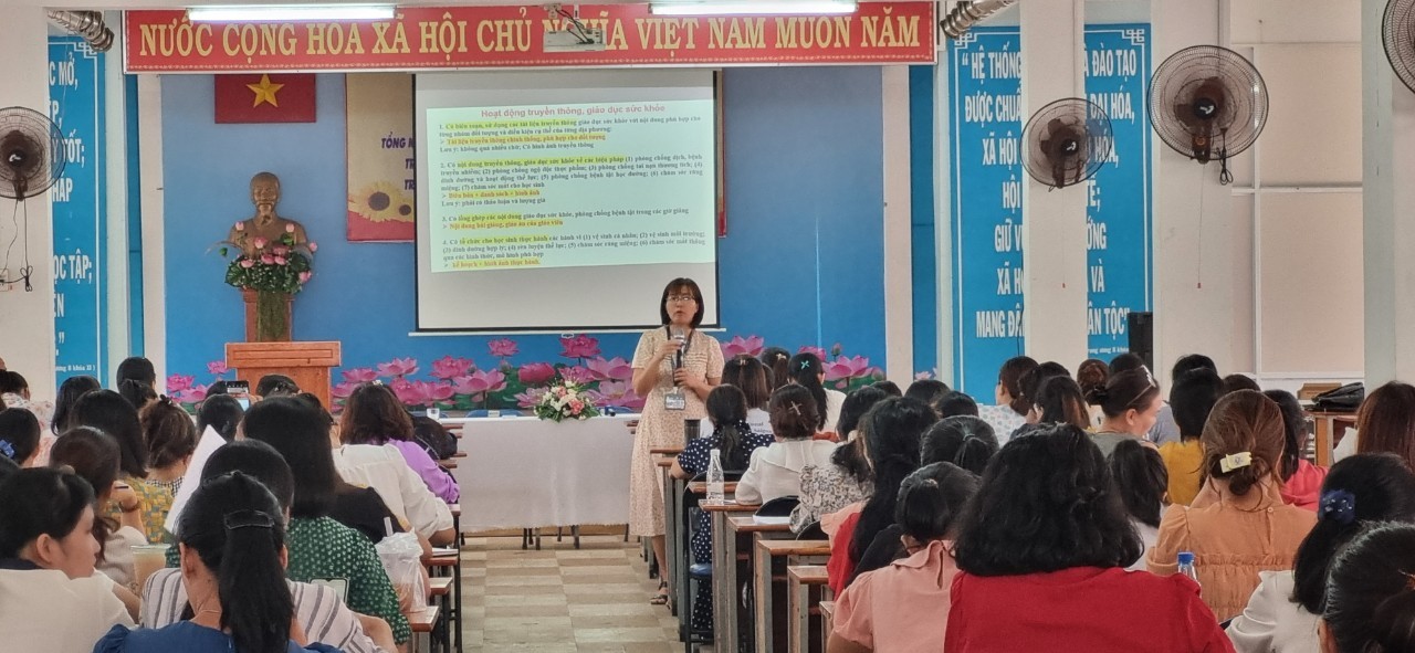 Với mục tiêu, thực hiện tốt chương trình y tế trường học để nâng cao chất lượng công tác quản lý, chăm sóc sức khoẻ học sinh. Buổi tập huấn đã giúp các thành viên tham dự buổi tập huấn cập nhật, trang bị thêm các nội dung triển khai theo Thông tư liên tịch số 13/2016/TTLT-BGDĐT-BYT ngày 12 tháng 5 năm 2016 của Bộ Y tế và Bộ Giáo dục và Đào tạo; Nhân viên y tế trường học được ôn lại các kiến thức chăm sóc sức khỏe cho học sinh, đảm bảo công tác chăm lo về ăn uống và sinh hoạt, thực hiện tốt công tác y tế trường học.