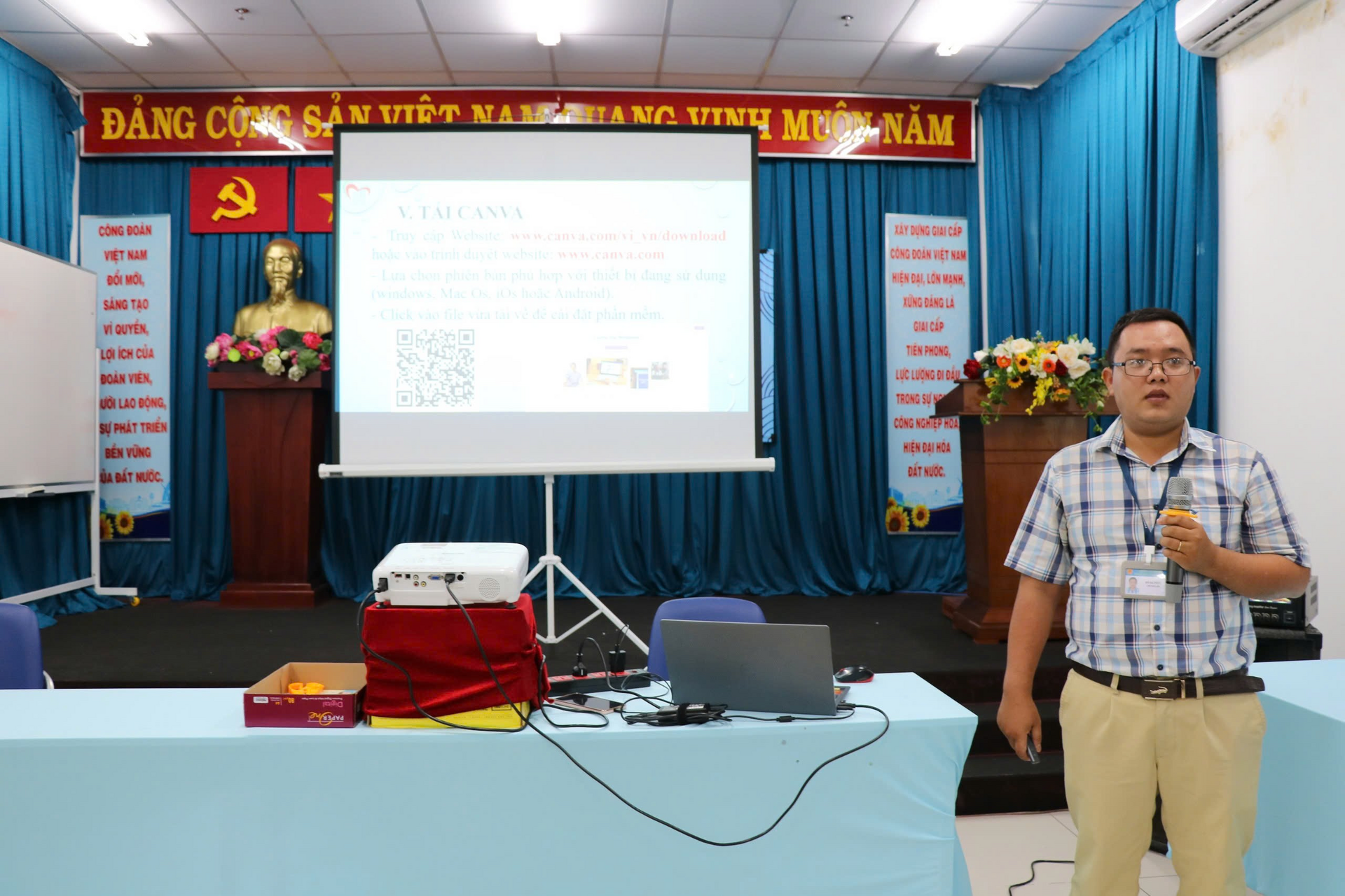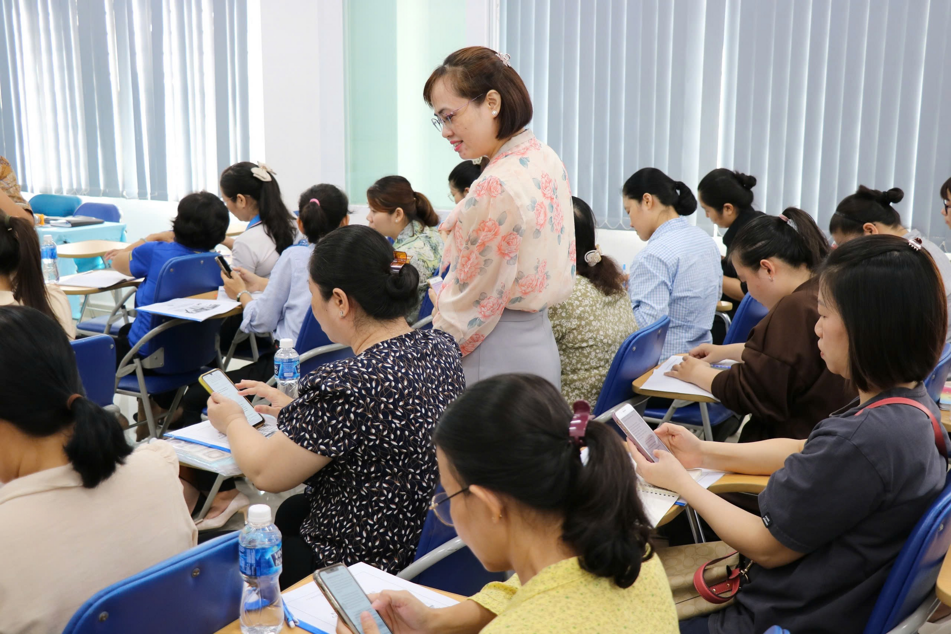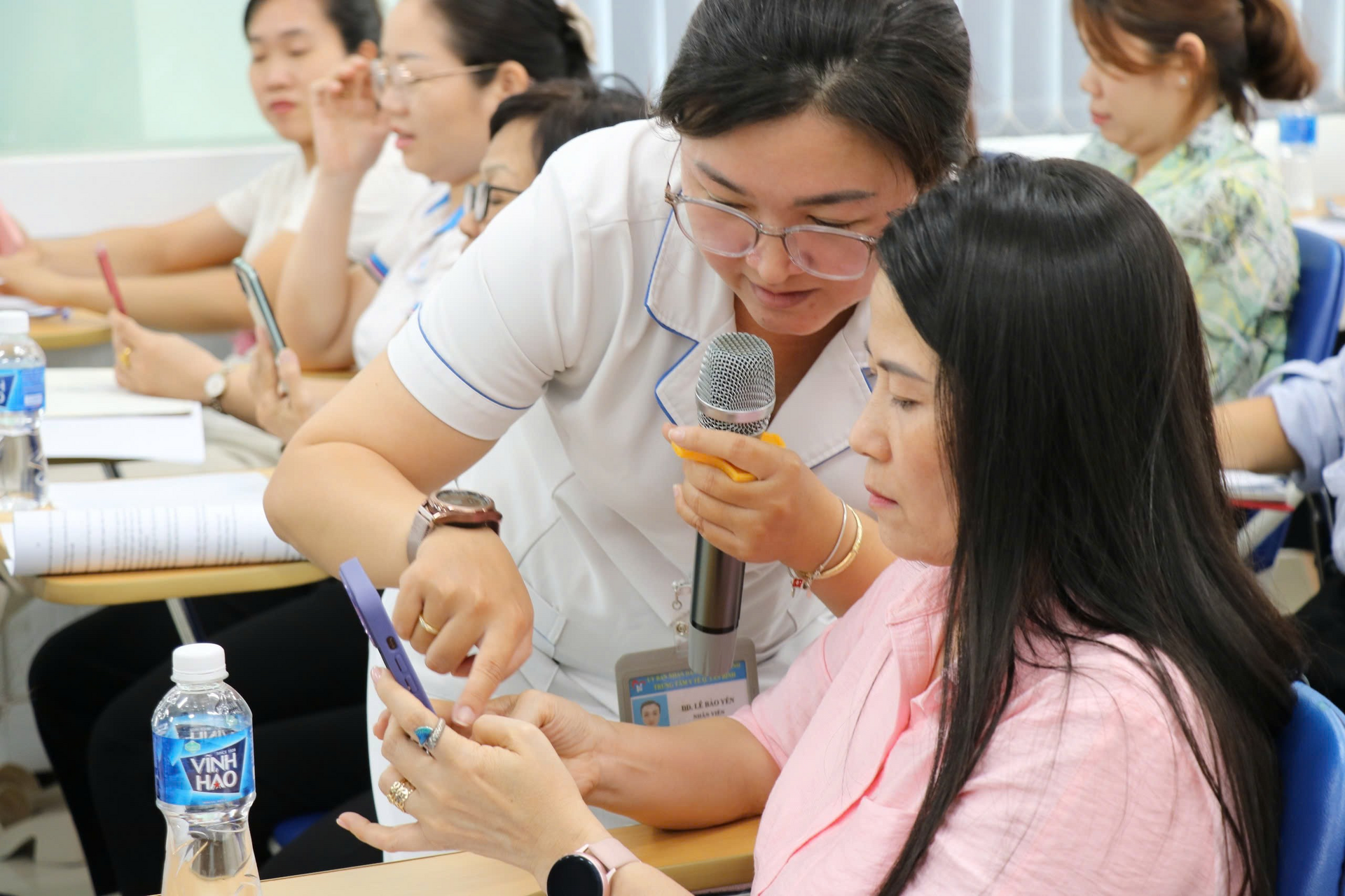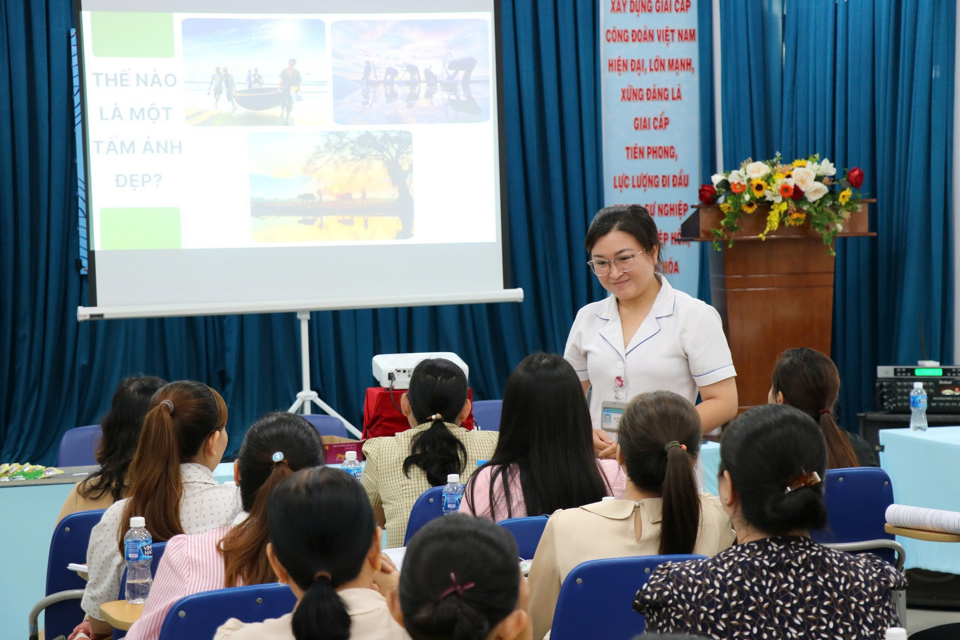 Đồng thời, tại khóa tập huấn ngoài việc cập nhật kiến thức đại cương và các kỹ năng cơ bản về Truyền thông GDSK như: Xây dựng kế hoạch truyền thông; Phương pháp, phương tiện Truyền thông giáo dục sức khỏe phù hợp; Xây dựng đề cương và thực hiện được một buổi nói chuyện sức khỏe, truyền thông nhóm; Nắm được kỹ năng giáo dục sức khỏe cá nhân (Tham vấn – Tư vấn); Biết và thực hiện được góc giáo dục sức khỏe, các học viên tham gia lớp tập huấn còn được hướng dẫn thêm về kỹ năng viết tin, kỹ năng chụp hình và sử dụng phần mềm canva hỗ trợ trong thực hiện công tác truyền thông giáo dục sức khỏe tại đơn vị.