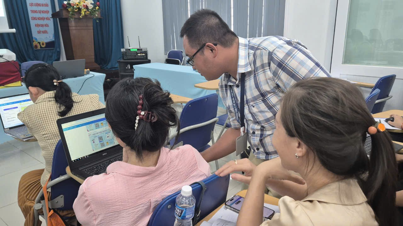 Học viên làm bài lượng giá đầu khoá và cuối khoá qua ứng dụng quét mã QR
