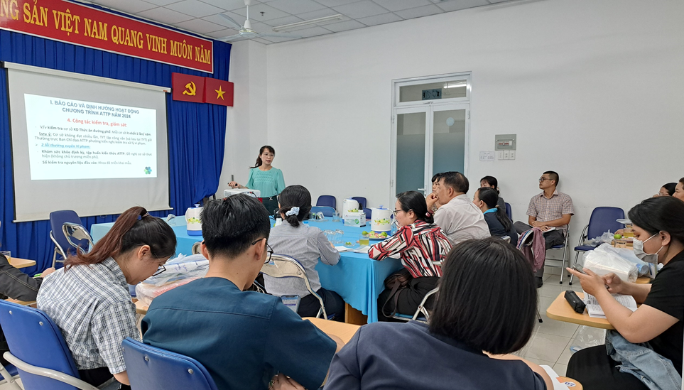 Ngày 16/01/2024 tại phòng họp Trung tâm Y tế quận Tân Bình, Khoa Y tế công cộng - An toàn thực phẩm (Khoa YTCC-ATTP) thực hiện tổ chức họp giao ban mạng lưới chương trình an toàn thực phẩm quý I năm 2024 và hướng dẫn cập nhật kiến thức chuyên môn về công tác đảm bảo an toàn thực phẩm cho cán bộ phụ trách chương trình an toàn thực phẩm tại 15 Trạm Y tế phường.
