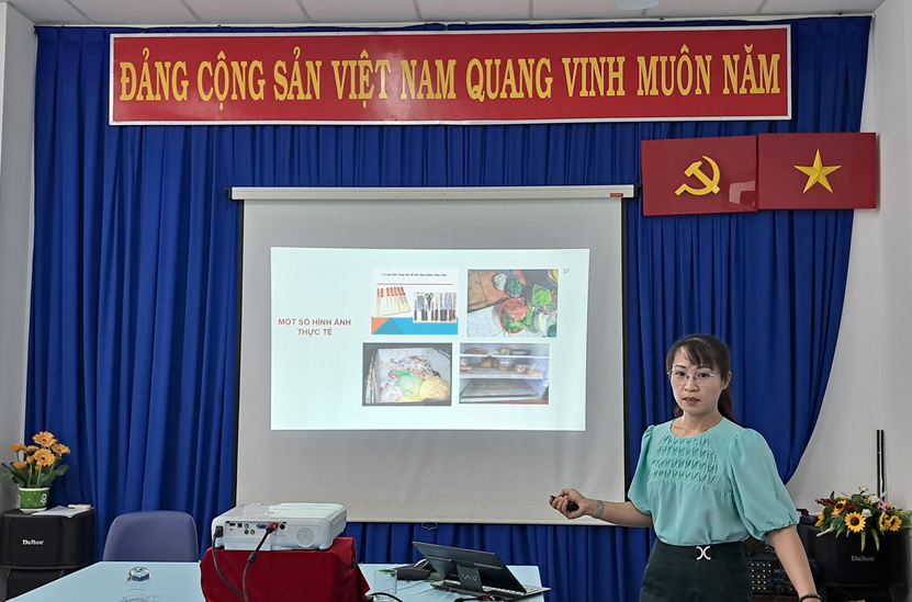 Tham dự tập huấn, các viên chức phụ trách chương trình an toàn thực phẩm đã được Ths.Nguyễn Cư Minh - Trưởng Khoa YTCC-ATTP hướng dẫn một số nội dung về các văn bản quy phạm pháp luật trong công tác an toàn thực phẩm (ATTP): Nghị định 124/2021/NĐ-CP sửa đổi, bổ sung một số điều của Nghị định 115/2018/NĐ-CP quy định xử phạt hành chính về an toàn thực phẩm... ; vai trò, nhiệm vụ của Ban chỉ đạo ATTP tuyến phường, công tác bảo đảm ATTP đối với kinh doanh thức ăn đường phố; nghiệp vụ thanh kiểm tra... Bên cạnh những kiến thức về chuyên môn, nội dung tập huấn còn nêu các tình huống thường gặp và cách xử lý tình huống khi kiểm tra thực tế tại các cơ sở.
