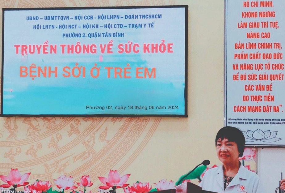 Tại buổi tập huấn, báo cáo viên Bác sĩ CKI Vũ Thị Đà –Trạm Y tế Phường 02 trình bày về các dấu hiệu nhận biết bệnh sởi; cách thức và mức độ lây truyền bệnh sởi; các biến chứng nguy hiểm có thể xảy ra cho trẻ khi mắc bệnh sởi; lịch tiêm vắc xin sởi… nhằm cung cấp kiến thức phòng chống bệnh sởi đến các CTVSKCĐ.