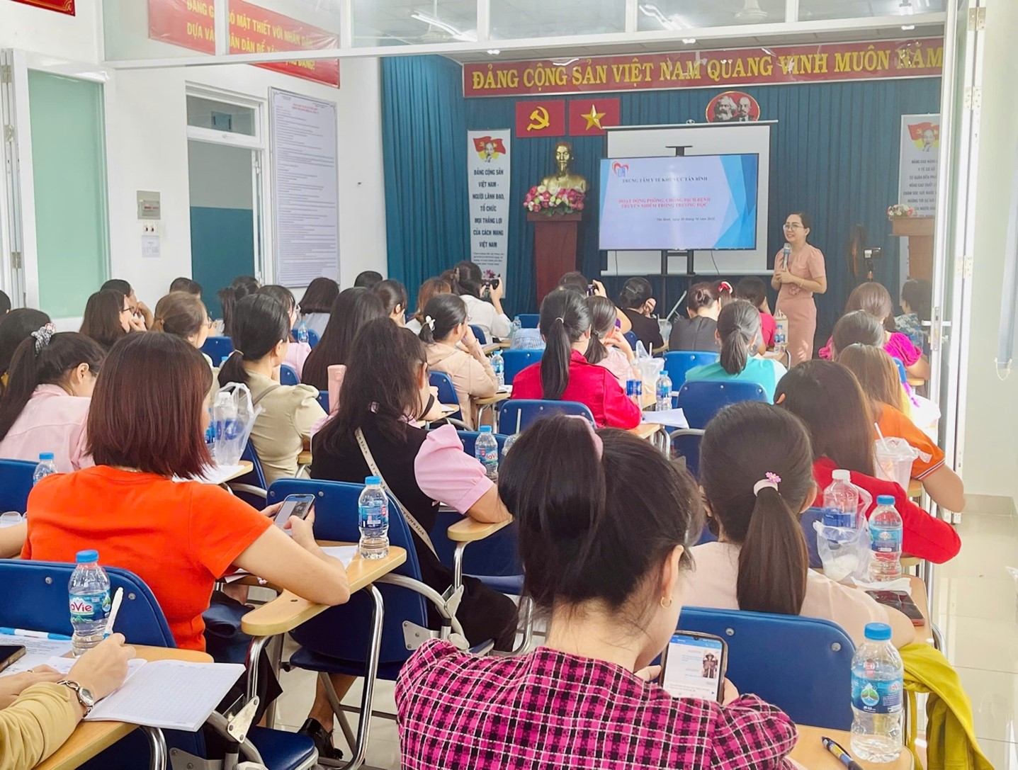Ths Lê Thị Châu An - Phó Trưởng khoa KSBT báo cáo tại 2 buổi tập huấn