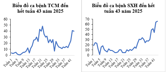 Trong tuần 43, ghi nhận 66 ca mắc sốt xuất huyết, tăng 26,9% so với trung bình 4 tuần trước (52 ca). Ca bệnh xuất hiện trên địa Phường Tân Sơn Hoà, Phường Tân Sơn Nhất, Phường Tân Hoà, Phường Bảy Hiền, Phường Tân Bình, Phường Tân Sơn.