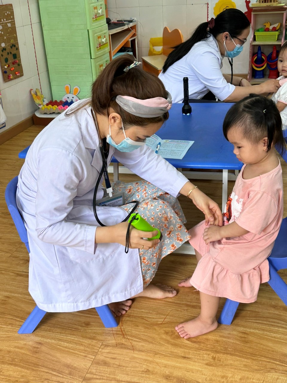 Hoạt động khám sức khỏe định kỳ cho học sinh thường được tổ chức vào dịp đầu năm học mới. Trường Mầm Non 2 là trường đầu tiên Trạm y tế phối hợp tổ chức khám sức khỏe cho học sinh trong đợt này.