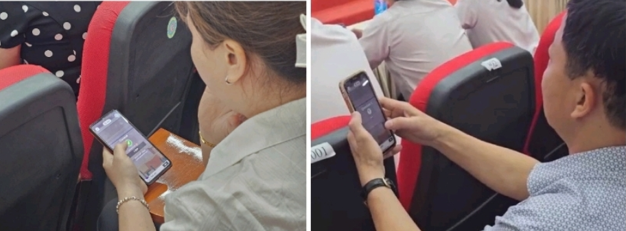 Ảnh: Các thí sinh thực hiện bài thi qua ứng dụng Kahoot trên điện thoại