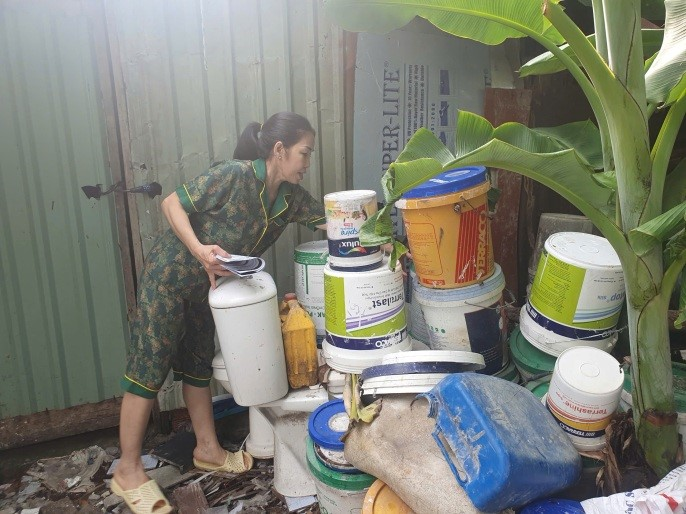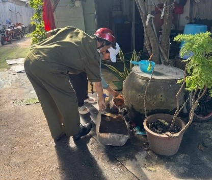 Ảnh: Giám sát điểm nguy cơ phát sinh lăng quăng tại một hộ gia đình