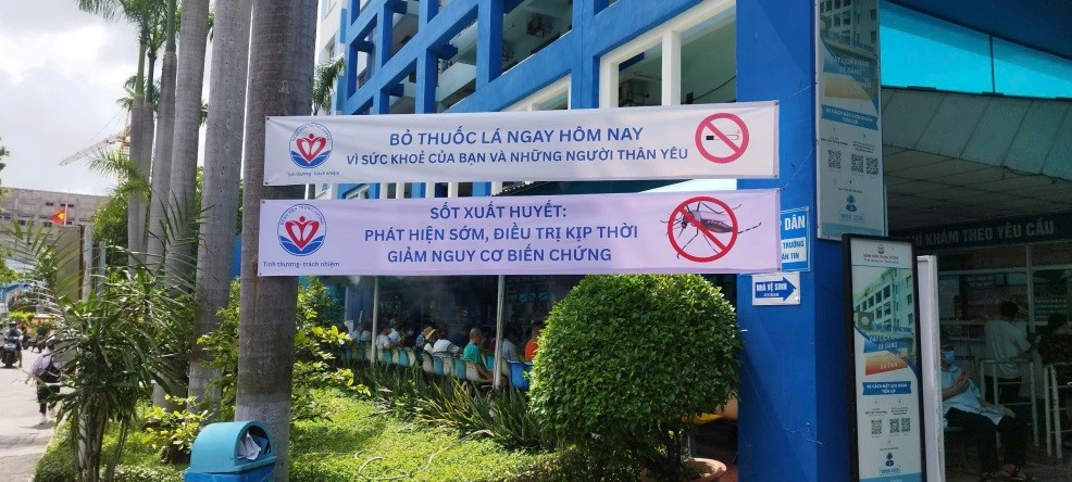 Ảnh: Các cơ sở y tế thực hiện treo băng rôn, tổ chức tập huấn, đăng tải bài viết truyền thông về sốt xuất huyết trên mạng xã hội