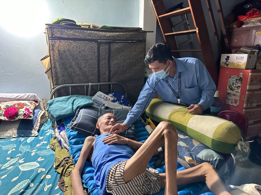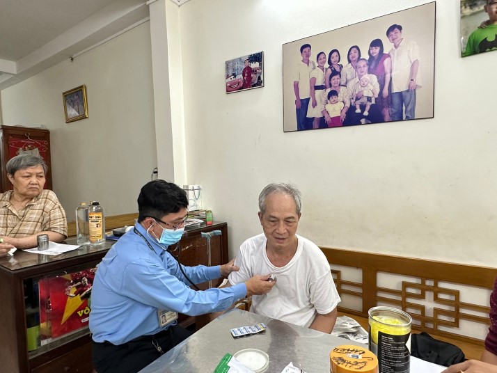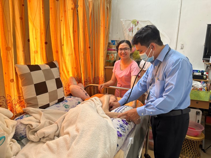 Bs. Nguyễn Thanh Trí – Trưởng TYT Phường 1 thăm khám tại nhà cho đảng viên, người dân có hoàn cảnh khó khăn, neo đơn