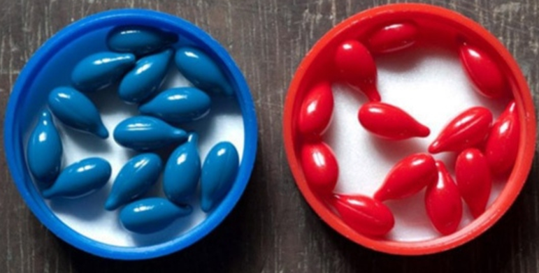 Viên nang Vitamin A 100.000 IU (màu xanh) và 200.000 IU màu đỏ