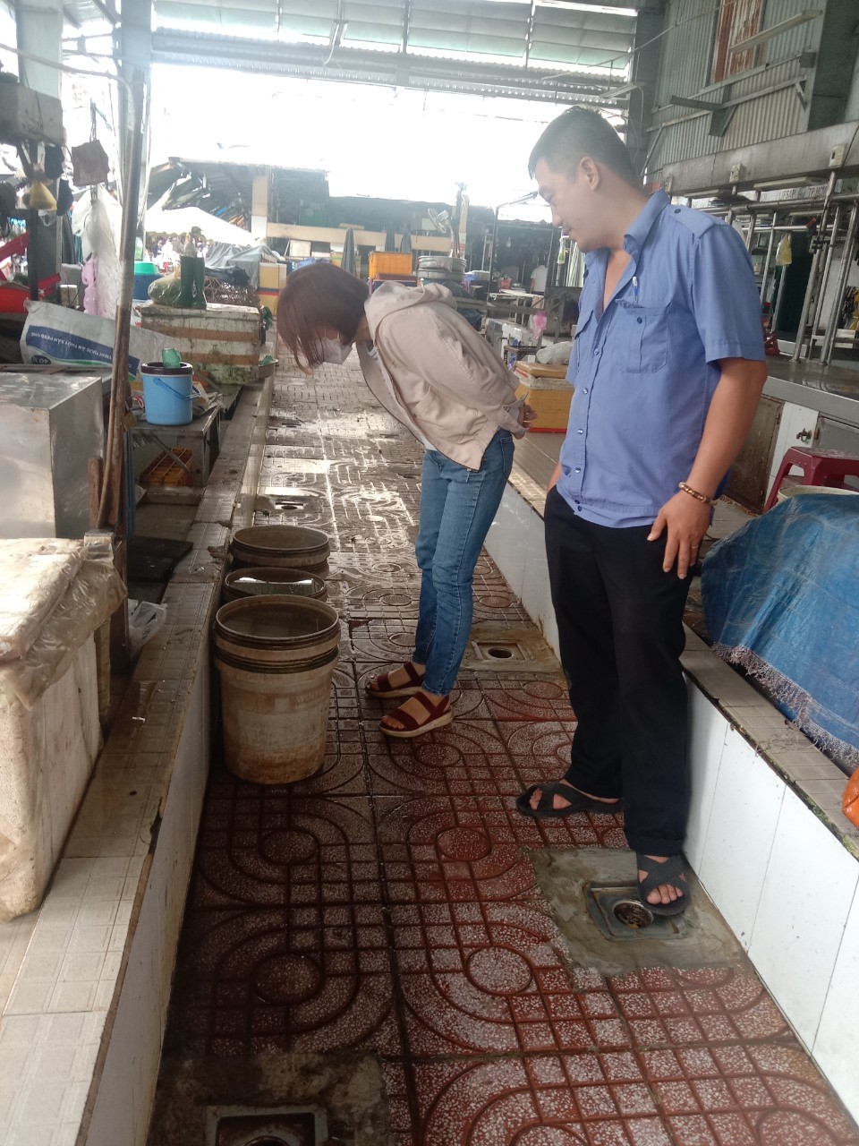 Trạm y tế Phường 14 kiểm tra các thùng nước uống cho gà tại chợ