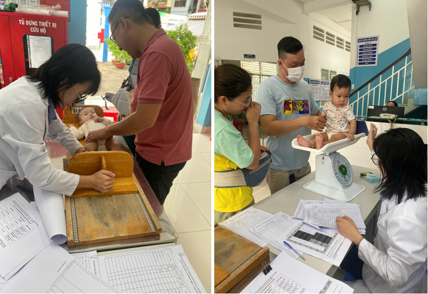 Khu vực tiếp nhận đo chiều cao và cân nặng cho trẻ