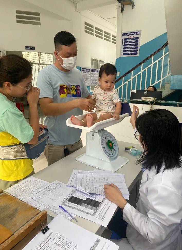 Khu vực tiếp nhận đo chiều cao và cân nặng cho trẻ